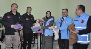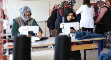 Okul atölyesinde deprem bölgesine kıyafet üretiliyor