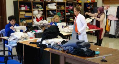 Kartal'da ev hanımları depremzedeler için kıyafetler dikiyor