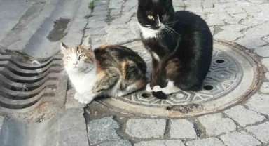 Üşüyen kediler ısınmak için çözüm yolu buldu