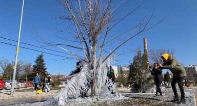 Donan ağaçlar kartpostallık görüntü oluşturdu