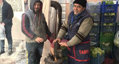 Pazar esnafı ısınabilmek için ateş yakıyor