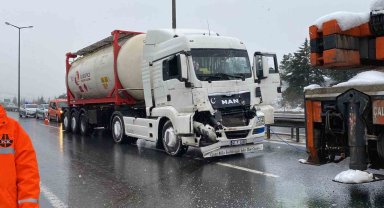 Yola dökülen yağ kazaya sebep oldu, tanker kamyona çarptı: 1 yaralı