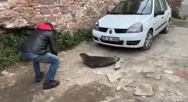 Yolunu şaşıran fok Ayvalık sokaklarında gezdi