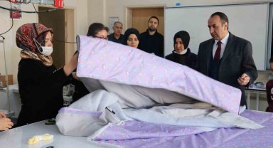 Bingöl'de depremzedeler için uyku tulumu dikiliyor