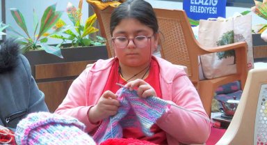 Yaşı küçük ama gönlü büyük, kendisi gibi depremzede çocuklar için bere ve atkı örüyor