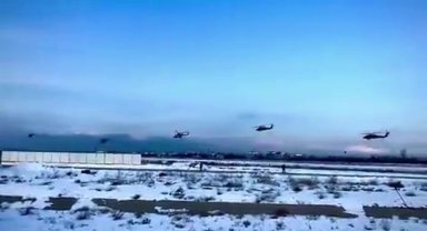 Helikopterler peş peşe böyle havalandı, askeri gören köylüler onlara sarıldı