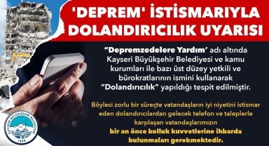 Kayseri Büyükşehir'den 'Deprem İstismarıyla Dolandırıcılık' Uyarısı