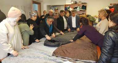 Kadınlar depremzedeler için uyku tulumu dikiyor