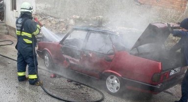 Park halindeyken alev alan araç kullanılamaz hale geldi