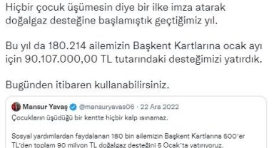 Ankara Büyükşehir'den 180 bin aileye doğal gaz desteği