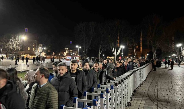 Miraç Kandili sebebiyle birçok vatandaş Ayasofya Camii'ne akın etti. Bu yıl açılışının 3'üncü yılında akşam ezanıyla birlikte Ayasofya'ya gelen vatandaşlar yatsı namazına kadar Kur'an-ı Kerim okuyup, dualar etti. Ayasofya Camii'nin avlusunda ise bazı vakıf temsilcileri camiye gelen vatandaşlara helva ve lokum dağıttı.