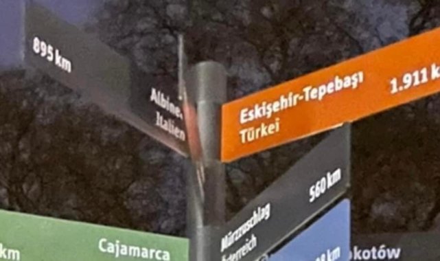 Sosyal medya hesaplarından paylaşılan ve Berlin'de olduğu söylenen bir tabela ilgi gördü. Söz konusu tabelada dünyanın farklı ülkelerinden şehirler yer alırken, Türkiye'den Eskişehir'in Tepebaşı ilçesinin yer alması beğeni topladı. Şehirlerin istikametlerini de gösteren tabelada, Tepebaşı ilçesinin bin 911 kilometre uzaklıkta olduğu görüldü.