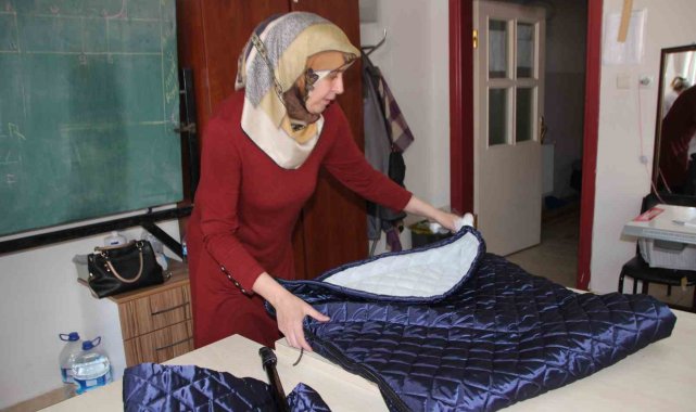 Bilecik Halk Eğitim Merkezi kursiyerleri Kahramanmaraş'ta meydana gelen ve 10 ili etkileyen asrın felaketi olarak nitelendirilen deprem sonrası harekete geçerek, uyku tulumu üretmeye başladı.