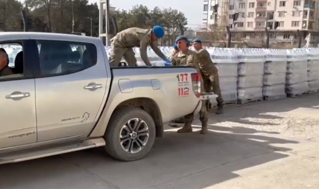 Milli Savunma Bakanlığı (MSB) sosyal medya hesabından, deprem bölgesine gelen içme suyu ve temel gıda malzemelerinin afetzedelere ulaştırılmasında Mehmetçiğin çalışmalarını paylaştı.