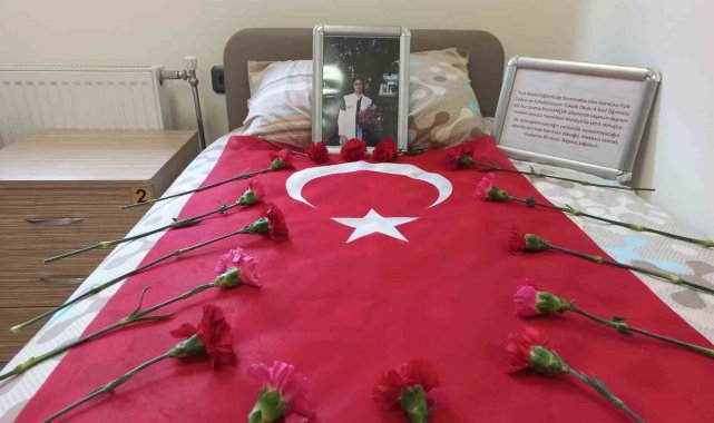 Malatya'da depremde hayatını kaybeden Recep Tayyip Erdoğan Üniversitesi öğrencisi Elif Nur Şeyma Dalhançer'in Rize'de kaldığı kız öğrenci yurdundaki yatağına çiçek ve Türk Bayrağı koyuldu.