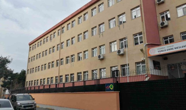 İstanbul'un Pendik ilçesinde depreme karşı riskli bulunduğu için eğitim ve öğretime ara verilen 93 okuldan biri olan Yunus Emre Mesleki ve Teknik Anadolu Lisesi görüntülendi. Okulun bahçesinin bir kısmına masa, sandalye ve bilgisayar kasalarının yığıldığı görüldü.