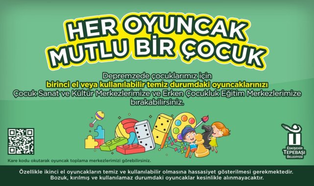 Tepebaşı Belediyesi, Kahramanmaraş merkezli meydana gelen 7.7 ve 7.6 büyüklüğündeki depremlerden etkilenen çocuklar için 'Her Oyuncak Mutlu Bir Çocuk' sloganı ile oyuncak kampanyası başlattı.