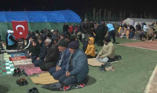 Adıyaman'da depremzedeler çadır kentte saf tutarak, Miraç Kandili'nde dua edip, namaz kıldı.