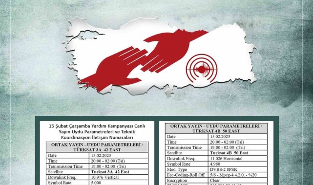 Türkiye'nin yüreğinde derin yaralar açan, son yüzyılın en büyük deprem felaketinin yaşandığı bu günlerde televizyon kanalları yardım için ortak yayında bir araya geliyor. 15 Şubat Çarşamba akşamı saat 20.00'de gerçekleşecek olan ortak yayının frekansları belli oldu.