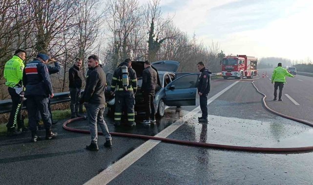 Düzce(İHA) – Kahramanmaraş merkezli meydana gelen 2 büyük depremin ardından Diyarbakır'dan İstanbul'a giden ailenin otomobili tem otoyolu Düzce kesiminde yandı.
