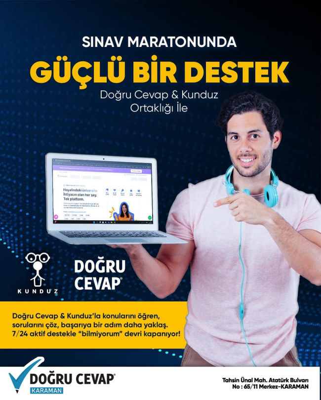 -Yapay zekâ destekli kişisel çalışma planları sayesinde daha verimli bir hazırlık süreci geçirebilecek.Doğru Cevap Eğitim Kurumları yetkilileri, bu adımın öğrencilerin yalnızca sınıf içi başarılarını değil, aynı zamanda üniversite sınavlarına hazırlık performanslarını da güçlendireceğini vurguladı.Kurumsal açıklamada şu ifadelere yer verildi:“Hedefimiz, öğrencilerimize sadece okulda değil, dijital dünyada da en kaliteli eğitimi sunmak. Kunduz ile yaptığımız bu iş birliği, onların başarı yolculuğunda güçlü bir destek olacaktır.”Doğru Cevap Eğitim Kurumları, eğitimde fark yaratmaya ve yenilikçi uygulamalarla öğrencilerine katkı sunmaya devam ediyor.