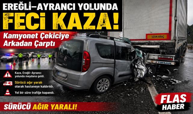Edinilen bilgilere göre kaza, bugün saat 10.50 sıralarında Ereğli’den Karaman istikametine seyir halinde olan araçların bulunduğu yolun 56. kilometresinde meydana geldi. Doblo tarzı gri hafif ticari araç, sürücüsü O.K.’nin dikkatsizliği sonucu önünde ilerleyen çekiciye arkadan çarptı.Çarpmanın etkisiyle araçta sıkışan sürücü O.K. (30), olay yerine sevk edilen ekipler tarafından güçlükle bulunduğu yerden çıkarıldı. Ağır yaralanan sürücü, sağlık ekiplerinin ilk müdahalesinin ardından ambulansla Karaman Eğitim ve Araştırma Hastanesi’ne kaldırıldı.Kaza nedeniyle yol bir süre kontrollü olarak sağlanırken, olayla ilgili soruşturma başlatıldı.