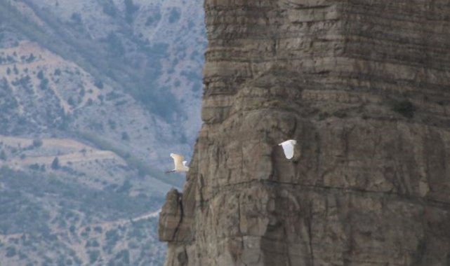 Erzurum'un Uzundere ilçesinde büyük ak balıkçıl kuşu dron ile görüntülendi.