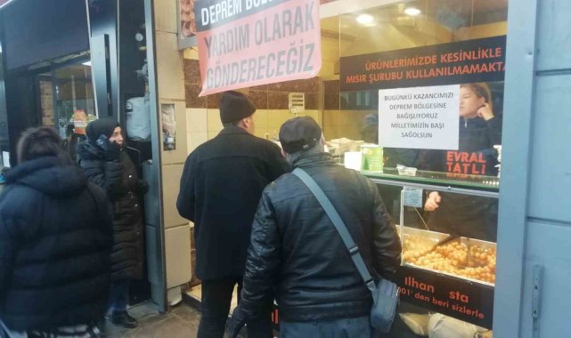 Deprem bölgesindeki vatandaşlara yardımcı olmak amacıyla bir günlük kazancının tamamını bağışlayacağını belirten esnaf müşterilerin takdirini topladı. Dükkânın camındaki "bugünkü kazancımızı deprem bölgene bağışlıyoruz, milletimizin başı sağ olsun" yazılı kağıt gören müşterilerin dikkatini çekti. Yazıyı gören vatandaşların bir çoğunun esnaftan alışveriş yapmak için kuyruk oluşturduğu görüldü. Konuyla ilgili konuşan esnaf ise, "Aslında böyle yazmak istemiyorduk ama belki vatandaşlar ilgi gösterir ve daha fazla bağış toplanır diye düşündük" dedi.