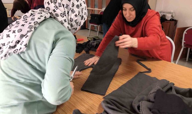 Eskişehir'de 20 kadın, Tepebaşı Belediyesi'ne bağlı Sütlüce Belde Evi'nde günde 12 saat gönüllü olarak çalışarak, depremzedeler için soğuktan koruyan kıyafetler dikiyor.