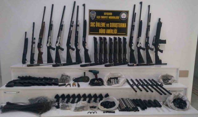 Konya'nın Beyşehir ilçesinde polisin silah üretimi yapılan bir ikamete düzenlediği operasyonda birçok ruhsatsız silah ve silah parçasına el konuldu. Olayla ilgili 1 kişi gözaltına alındı.Edinilen bilgiye göre, polis ekipleri Beyşehir ilçesinde bir ikamette silah üretimi ve üretilen silahların buradan piyasaya sürüldüğü bilgisine ulaştı. Bunun üzerine Beyşehir İlçe Emniyet Müdürlüğü Suç Önleme ve Soruşturma Büro Amirliği ekipleri harekete geçti. Adrese düzenlenen operasyonda adeta fabrikaya çevrilmiş evde 13 adet ruhsatsız yivsiz av tüfeği, 10 adet kısa pompalı tüfek, bin 289 adet av tüfeği parçası, 4 adet tüfek imalatı için kullanılan el aleti ele geçirildi. Ruhsatsız silah ve silah parçalarına el koyan polis ekipleri olayla ilgili ikametteki 1 şüpheliyi gözaltına aldı. Şüpheli hakkında adli işlem başlatıldı.