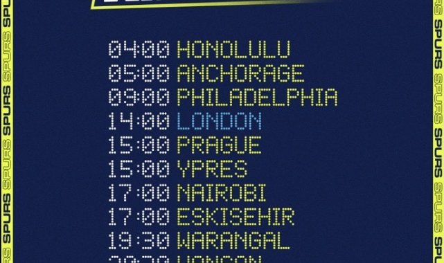 İngiltere'nin büyük takımlarından birisi olan Tottenham Hotspur, bugün oynayacağı lig maçı öncesi sosyal medya üzerinden ilginç bir paylaşımda bulundu. Dünyanın farklı şehirlerinden her hafta Tottenham'ın maçını izleyecek taraftarlara, hangi saat diliminde maçı izleyebilecekleri konusunda bilgi veren tabloda bu sefer Eskişehir'e de yer verildi. "Dünya'nın neresinden bizi izleyeceksiniz?" yazılı paylaşımda farklı ülkelerden birçok şehir kullanıldı. Çekya, Belçika ve Nijerya'nın da şehirlerinin bulunduğu paylaşımda Eskişehir'i görenler yorumlarda şaşkınlıklarını gizleyemedi. İngiliz devinin Eskişehir paylaşımı kısa zamanda sosyal medya üzerinde binlerce beğeni aldı.