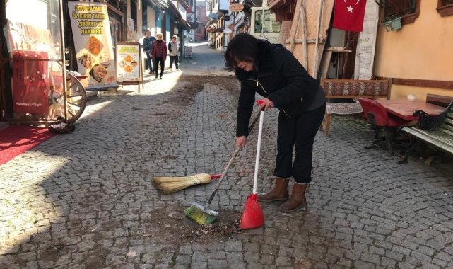 Tarihi Odunpazarı bölgesinde yapımına başlanan bir inşaat esnafa zor anlar yaşatırken, vatandaşlar inşaatın sebep olduğu toprakları dükkân önünden kendi çabalarıyla temizlemek zorunda kaldı.