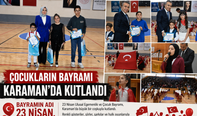 23 Nisan Ulusal Egemenlik ve Çocuk Bayramı´nın 106'ncı yılı tüm yurtta olduğu gibi ilimizde de düzenlenen etkinliklerle kutlandı.Program, çelenk sunma töreni ile başladı. Çelenk sunma töreninin ardından kutlama programı için Kazım Karabekir Spor Salonu’na geçildi.Kutlama programına; Valimiz Hayrettin Çiçek ve eşi Berna Çiçek Hanımefendi, Belediye Başkanı Savaş Kalaycı, Cumhuriyet Başsavcısı Tuba Ersöz Ünver, Adli Yargı Adalet Komisyonu Başkanı Osman Yılmaz, Karamanoğlu Mehmetbey Üniversitesi Rektörü Prof. Dr. Mehmet Gavgalı, İl Jandarma Komutanı J.KD.Albay Osman Saygılı, İl Emniyet Müdürü Mehmet Turhan, İl Millî Eğitim Müdürümüz Mehmet Çalışkan, daire müdürleri, okul yöneticileri, öğrenciler ve vatandaşlar katıldı.Saygı duruşu ve İstiklal Marşı’nın okunmasıyla başlayan programda günün anlam ve önemine ilişkin konuşmayı İl Millî Eğitim Müdürü Mehmet Çalışkan yaptı. Konuşmasında geçtiğimiz günlerde Kahramanmaraş’ta yaşanan elim olayda hayatını kaybeden öğretmen ve öğrencilere rahmet dileyen Çalışkan, milletçe derin bir üzüntü yaşandığını ifade etti.Öğrencilere hitap eden Çalışkan, onların ülkenin geleceği ve en büyük umudu olduğunu vurgulayarak, eğitim camiası olarak çocukları yalnızca akademik başarıyla değil; millî ve manevi değerlerle donatılmış bireyler olarak yetiştirme gayreti içinde olduklarını belirtti.Programda öğrenciler tarafından okunan şiirler davetliler tarafından tam not aldı. Kutlamalar çerçevesinde öğrencilerin hünerlerini sergiledikleri folklorik ve müzikal gösterileri protokol üyelerine ve misafirler ilgiyle izledi.Kutlamalar, 23 Nisan Ulusal Egemenlik ve Çocuk Bayramı’nın 106’ncı yılı dolayısıyla düzenlenen yarışmalarda dereceye giren öğrencilere ödüllerinin protokol üyeleri tarafından takdim edilmesiyle sona erdi.