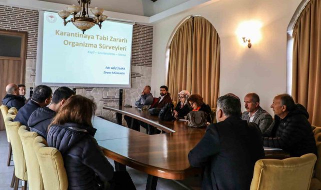 Eskişehir İl Tarım ve Orman Müdürlüğü tarafından Eskişehir'de yürütülmekte olan 2023 yılı Bitki Sağlığı Programı çerçevesinde "Karantinaya Tabi Zararlı Organizma Sürvey Çalışmaları" konularında hizmet içi eğitim toplantısı gerçekleştirildi.Toplantı, İl,İlçe Tarım ve Orman Müdürlüğü bünyesindeki görevli teknik personelin katılımıyla, İl Tarım ve Orman Müdürlüğü Kütahya Yolu Hizmet Binası toplantı salonunda düzenlendi. Bitkisel Üretim ve Bitki Sağlığı Şube Müdürlüğü bünyesinde görevli teknik personellerden Ziraat Mühendisi Eda Gözükara Karantinaya Tabi Zararlı Organizma Sürvey Kayıt Sistemi (KASKs) ve Karantinaya Tabi Patates Hastalık ve Zararlıları sürveyleri hakkında, Ziraat Mühendisi Davut Uysal, Domates ve Biber Virüs Hastalıkları ve Zararlıları Sürveyleri hakkında, Ziraat Mühendisi Ekrem Ada Karantinaya Tabi Meyve Hastalık ve Zararlıları hakkında bilgi verdi.Bilgilendirme toplantısı, İlçe Tarım ve Orman Müdürlüklerinde sürvey çalışmalarında kullanılmak üzere Akdeniz meyvesineği, kiraz Sineği, domates Güvesi, elma iç kurdu tuzakları dağıtımının ardından sona erdi.