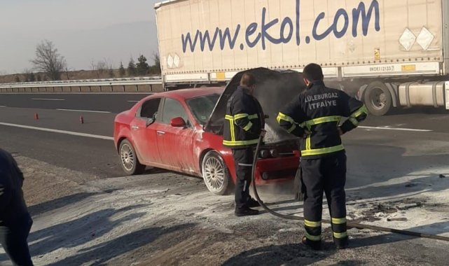 Alınan bilgiye göre, Lüleburgaz ilçesi TEM otoyolu İstanbul istikametine seyir halinde Romanya uyruklu Lucian Dedıu idaresindeki BR 44 MRA plakalı otomobilin alev aldı. Çevredekilerin haber vermesi üzerine bölgeye itfaiye ekipleri sevk edildi. Ekiplerin müdahalesiyle yangın söndürülürken, otomobil kullanılmaz hale geldi.