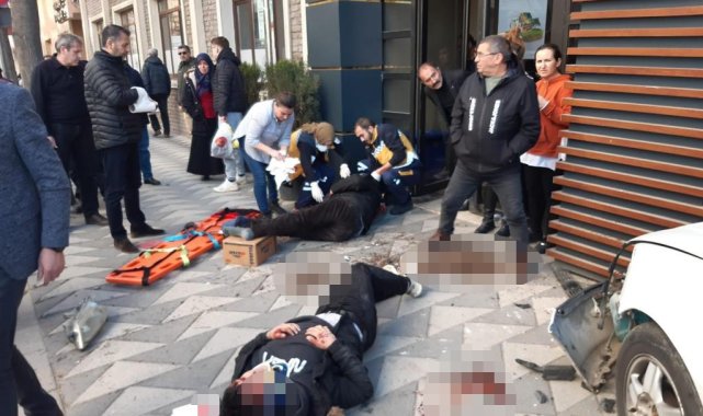 Eskişehir'de sürücüsünün direksiyon hakimiyetini kaybettiği otomobil, yolun karşısına geçmek için bekleyen yayaların arasına daldı, 4 kişi yaralandı.