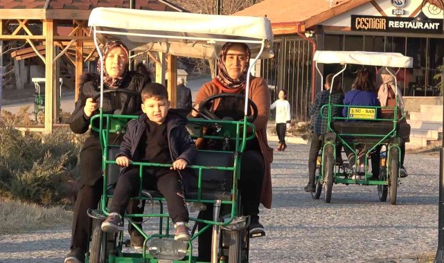 Çocuklarıyla birlikte vakit geçirdiğini ifade eden Halime Doğan, "15 tatil dolayısıyla çocuklarımızı gezdirmek için getirdik. Havanın güzelliğinden de yararlanarak. Daha önce her zaman kar yağardı. Bu zamanlarda buralarda kar olurdu. Ama hava güzel, yaz havasını aratmıyor. Çocukları eğlendiriyoruz, gezdiriyoruz. Güzel bir karne hediyesi oldu onlara" şeklinde konuştu.
