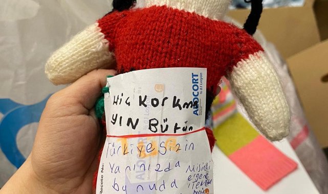 "Hiç korkmayın, bütün Türkiye sizin yanınızda, bunu da atlatacağız", "Merak etmeyin bugünler de geçecek" ve "Hasan Ertuğrul'un kumbarası, kardeşlerine hediyesi" şeklinde notlar ile depremzedelere gönderilmek üzere teslim edilen oyuncaklar, duygusal anların yaşanmasına neden oldu.