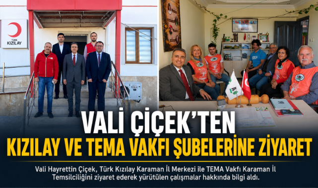 Vali Çiçek, ilk olarak Türk Kızılay Karaman İl Merkezinde İl Başkanı Adem Küçükyarma ile bir araya geldi. Kurum bünyesinde sürdürülen faaliyetler hakkında bilgi alan Çiçek, hizmet birimlerinde incelemelerde bulundu.Kızılay’ın yaklaşık 158 yıllık köklü geçmişiyle mazlumlara, mağdurlara ve ihtiyaç sahiplerine umut olduğunu vurgulayan Vali Çiçek, “Milletimizin sevgi ve şefkat eli olan Kızılay, merhamet elini dünyanın dört bir yanına uzatarak dayanışma ve yardımlaşmanın en güçlü sembollerinden biri olmuştur” dedi.Ziyaret sonunda Vali Çiçek, İl Başkanı Adem Küçükyarma, yönetim kurulu üyeleri ve gönüllülere özverili çalışmalarından dolayı teşekkür ederek başarı dileklerini iletti.Daha sonra TEMA Vakfı Karaman İl Temsilciliğini ziyaret eden Vali Çiçek, İl Temsilcisi Halil Başkalkan ve yönetim kurulu üyeleriyle görüştü. Görüşmede çevre koruma, ağaçlandırma ve doğa bilincine yönelik çalışmalar ele alındı.TEMA’nın üstlendiği sorumluluğun takdire şayan olduğunu belirten Çiçek, doğanın korunması ve gelecek nesillere daha yaşanabilir bir çevre bırakılması adına yapılan çalışmaların önemine dikkat çekti.Ziyaretlerin sonunda Vali Çiçek, TEMA gönüllülerine de teşekkür ederek çalışmalarında kolaylıklar diledi.