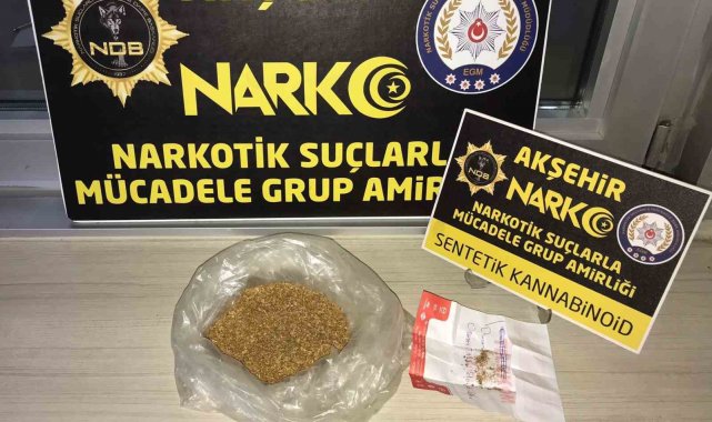 Edinilen bilgiye göre, Akşehir İlçe Emniyet Müdürlüğü Narkotik Suçlarla Mücadele Grup Amirliği ekipleri, alınan istihbarat üzerine uyuşturucu taciri ve kullanıcılarına yönelik çalışma başlattı. Yapılan araştırmalar neticesinde C.D., M.Ü., M.K., H.S., E.D. ve A.Ö. isimli şüpheliler yakalanarak gözaltına alındı. Şahısların üzerinde yapılan aramada 1,90 gram sentetik kannabinoid ele geçirildi. Polis ekipleri, şüphelilerin uyuşturucu maddeyi E.D.'den aldığını tespit etti. Şüphelinin evinde de arama yapan polis ekipleri, 106,50 gram sentetik kannabinoid ele geçirildi. Gözaltına alınan 7 şüpheli hakkında işlem yapılırken, şüphelilerden E.D. ise "uyuşturucu madde satmak" suçundan sevk edildiği mahkemece tutuklanarak cezaevine gönderildi.