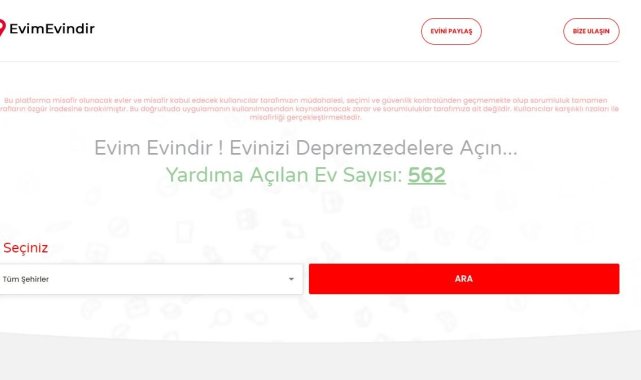 Avukat Enes Malik Saran da, "Genç arkadaşlarla birlikte bağımsız bir afet koordinasyon merkezi kurduk. Bir çok konuda faaliyet yürüttük bunlardan birisi de evim evindir projesi, amacımız barınma krizini aşmak. Amacımız çadırlarda hatta sokaklarda konaklayan vatandaşları, ülkenin dört bir yanında evlerinde misafir etmek isteyen ev sahipleri ile aralarında bağlantı kurmak. Deprem sadece 10 ilimizi değil 81 ilimizi etkilemiştir. Arkadaşlarımız gönüllü olarak hiçbir menfaat beklemeksizin bu çalışmalar katkı sunuyorlar" diye konuştu.
