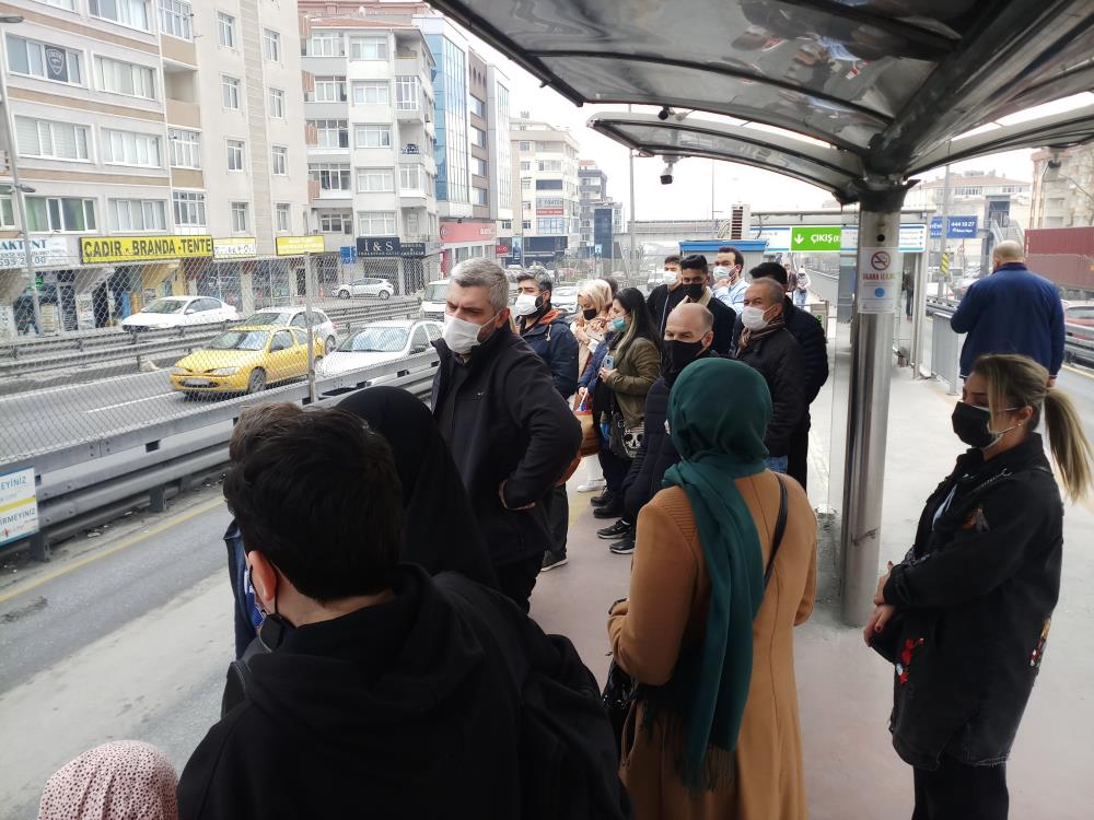 Korona virüs pandemisinde son günlerde artan vaka sayılarına rağmen haftanın ilk iş gününde metrobüslerde yoğunluk oluştu. Sabah saatlerinde işe giden İstanbulluların görüntüsü ise pes dedirtti. Durakların oldukça yoğun olduğu görülürken, oluşan kalabalık nedeniyle vatandaşlar metrobüslere binmekte zorlandı. Metrobüs içinde ise adeta adım atacak yer kalmadı. Pandemi öncesine dönen metrobüslerde sosyal mesafeye hiç uyulmadığı görüldü.