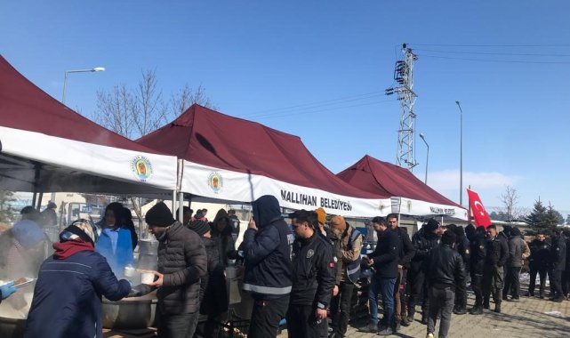 Ankara'nın Nallıhan ilçesinden; Nallıhan Belediyesi, Nallıhan Kaymakamlığı, İlçe Emniyet personeli ve gönüllü vatandaşlarla Kahramanmaraş'ta kurulan seyyar aşevinde, depremzedelere üç öğün sıcak yemek ikram ediliyor.