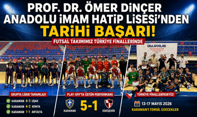 Okul sporları faaliyetleri kapsamında 27-30 Nisan 2026 tarihleri arasında Niğde’de gerçekleştirilen yarı final karşılaşmalarında Karaman’ı temsil eden ekip; Uşak, Konya ve Antalya temsilcilerinin bulunduğu grupta mücadele etti.Karaman temsilcisi, grup aşamasındaki ilk maçında Uşak ekibini 4-3, ikinci maçında Konya ekibini 4-2 mağlup etti. Üçüncü maçta Antalya temsilcisiyle 1-1 berabere kalan ekip, topladığı puanlarla grubunu lider tamamladı.Yarı finalin ardından play-off karşılaşmasına çıkan Prof. Dr. Ömer Dinçer Anadolu İmam Hatip Lisesi, Eskişehir temsilcisini 5-1’lik net bir skorla mağlup ederek adını Türkiye finallerine yazdırdı.Karaman temsilcisi, 13-17 Mayıs 2026 tarihleri arasında düzenlenecek Türkiye finallerinde ilini temsil edecek.Gençlik ve Spor İl Müdürü Mustafa Karadeniz, elde edilen başarıya ilişkin yaptığı değerlendirmede, “Takımımızın ortaya koyduğu mücadele ve disiplin örnek teşkil ediyor. Başta sporcularımız olmak üzere emeği geçen idareci ve öğretmenlerimizi tebrik ediyor, Türkiye finallerinde başarılar diliyorum.” ifadelerini kullandı.