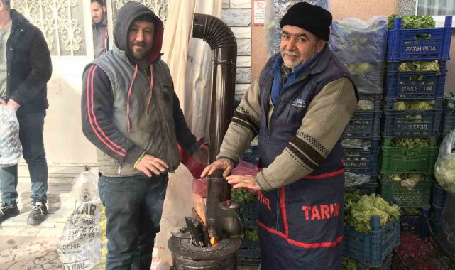 Kar yağışının durması ve güneşli bir gün olmasına rağmen soğuk hava etkisini göstermeye devam ediyor. Eskibağlar Mahallesinde kurulan pazartesi pazarında satış yapan esnaflar özellikle sabahın erken saatlerinde ve pazarın bitmesine yakın etkili olan soğuk yüzünden zor anlar yaşarken çareyi ateş yakmakta buluyor. Yaktıkları ateşi çaydanlıkla su ısıtarak da değerlendiren pazarcılar, açık havada ellerinin donduğundan şikayet etti. Ateş başında ateşte ellerini ısıtan pazarcılar ekmek parası kazanmak için tezgahlarının başına tekrar geçiyor.