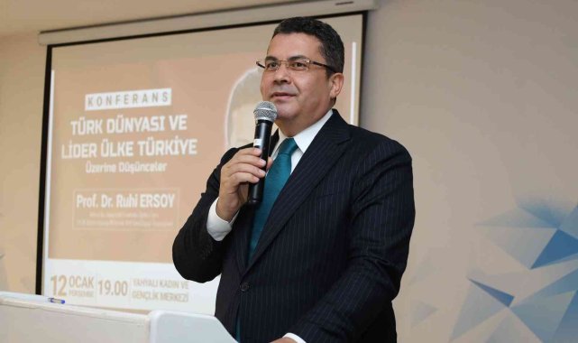 Prof. Dr. Ruhi Ersoy konuşmasında Türk tarihinin geçmişten bugüne önemli olaylarını anlattı. Ayrıca lider ülke olarak Türkiye, Türk dünyası ve milli kültür gibi birçok konuda önemli bilgiler verdi.