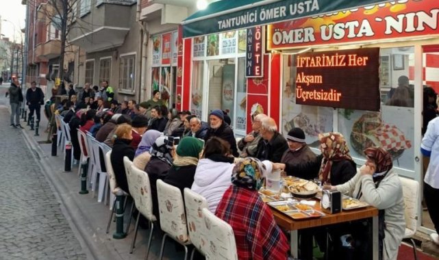 Eskişehir'de bir lokanta, 14'üncü yılı vesilesiyle Ramazan ayında vatandaşlara 30 gün ücretsiz iftar dağıtırken, dükkana gelemeyen yaşlıların yemekleri de evlerine gönderiliyor.Kutsal Ramazan ayında birçok firma ve kişi iftar sofrası kurmak veya iftarlık hediye ederek hayır kazanmaya çalışıyor.Eskişehir'de bir lokanta da bu hayır kervanına katılar her gün vatandaşlara ücretsiz iftar veriyor. Vatandaşlar, lokantaya gidip iftar yaparak oruçlarını açarken, işletme sahipleri ve çalışanlarına da dua ediyor.İşletme sahibi Ömer Altun, konuyla ilgili yaptığı açıklamada, "Ramazan ayının 30 günü boyunca tüm halkımıza iftar yemeğimiz ücretsizdir. İşletmemizde her akşam yaklaşık 200 kişiye 5 çeşit sulu yemek ikram ediyoruz. Her gün iftara gelen vatandaşların sayısı artıyor. Dükkanımıza gelemeyen yaşlılara iftarlık yemeklerini evlerine gönderiyoruz. İlgi ve alakaları için çok teşekkür ederiz" diye konuştu.Vatandaşlar da Ramazan ayında böyle bir duyarlı hareket için işletme sahibine teşekkür etti.
