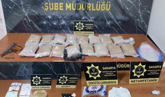 Sakarya İl Emniyet Müdürlüğü, uyuşturucu madde ticareti ve kullanımının engellenmesine yönelik çalışmalarına devam ediyor. Bu çerçevede polis ekipleri, Adapazarı, Serdivan, Akyazı ve Karasu ilçeleri ile İstanbul'da 5 ayrı uyuşturucu operasyonu düzenledi. Düzenlenen operasyonda, 9 kilogram sentetik uyuşturucu, 200 gram metamfetamin, 27 gram esrar, 10 extacy hap, 3 gram kokain, 2 hassas terazi, 3 ruhsatsız tabanca ve 30 mermi ele geçirildi. Konuya ilişkin olarak 22 şüpheli gözaltına alındı. Emniyetteki işlemleri sonrasında adliyeye sevk edilen şüphelilerden 20'si tutuklanarak cezaevine gönderildi.