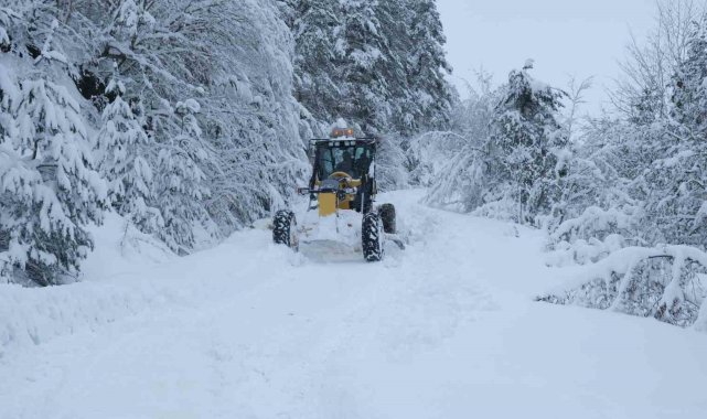 Kapanan yollarda kar temizleme çalışması aralıksız sürüyor.