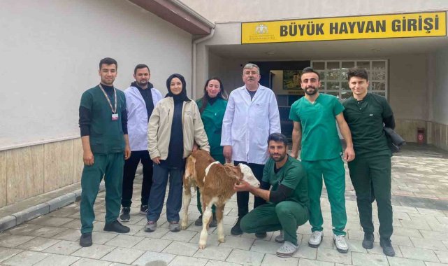 Konya'da karın boşluğu gelişmeyen ve kalın bağırsağı kapalı doğan 2 günlük buzağı, Selçuk Üniversitesi Veteriner Fakültesi Hayvan Hastanesinde tedavi altına alınarak sağlığına kavuşturuldu.Selçuk Üniversitesi Veteriner Fakültesi Hayvan Hastanesi Cerrahi Ana Bilim Dalı Öğretim Üyesi Prof. Dr. Fahrettin Alkan ve Arş. Gör. Gülsüm Boran Çayırlı tarafından acil operasyona alınan ve iyileşme gösteren buzağının tedavisi yoğun bakımda devam ediyor. Hayvan Hastanesinden yapılan açıklamada, buzağının sindirim sisteminde yaşadığı sorun nedeniyle hastaneye getirildiği belirtildi. Buzağı sahibinin uygulanacak tedavi hakkında bilgilendirildiği, tedavi girişimini kabul etmediği ve buzağıyı hastanede bırakarak ayrıldığı kaydedildi. Hastane olarak sahipli/sahipsiz tüm hayvanlara aynı derecede hassasiyet gösterildiği bildirilen açıklamada, "Hastanemiz, müdahale edilmediğinde ölmesi kaçınılmaz olan 2 günlük buzağıyı sahiplendi. Uzman bir ekip tarafından klinik ve ultrasografik muayenesi yapılan buzağının, bağırsak segmentlerinden bazılarının gelişmediği, dolayısıyla diğer hayvanlar gibi normal şekilde sindirim yapamayacağı ve vakanın bir anomali olduğu tespit edildi. Sonrasında Hayvan Hastanesi Cerrahi Ana Bilim Dalı Öğretim Üyesi Prof. Dr. Fahrettin Alkan ve Arş. Gör. Gülsüm Boran Çayırlı tarafından acil operasyona alınan buzağının kalın bağırsağı kapalı doğduğu ve gelişmediği için karın boşluğu açıldı. Kapalı olan kalın bağırsak segmenti tekniğine uygun olarak sağ karın duvarına tespit edildi ve böylece kolostomi operasyonu ile yapay anüs oluşturuldu. Bu tür vakalar, operasyon sırasında ve sonrasında ölüm oranının yüksek olduğu anomaliler arasında yer alıyor. Hastamız başarılı ve titizlikle yürütülen operasyon sonrası yoğun bakım tedavisiyle hayata tutundu. Yoğun bakım tedavisi devam eden buzağının genel durumu gün geçtikçe iyiye gidiyor" denildi.